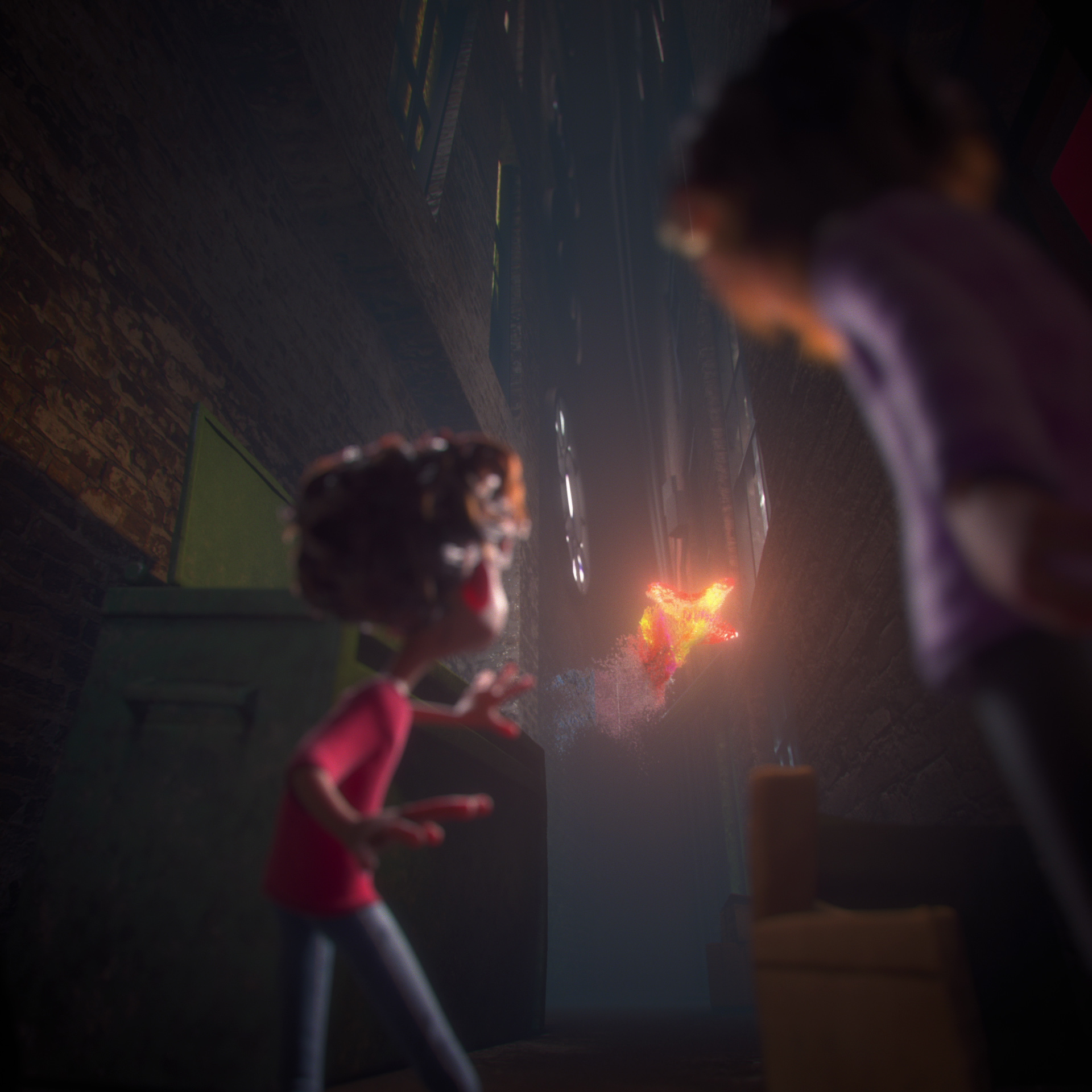 The patterns of the butterfly-vortex the characters travel through were heavily influenced by Islamic geometric patterns to honour the rich history and to highlight the energy of the World, Rick & Mario also modelled altered versions of the characters to be used in the second part, giving them longer, fluid limbs and more expressive faces.